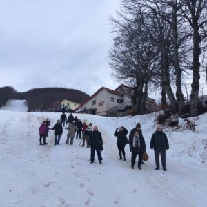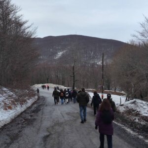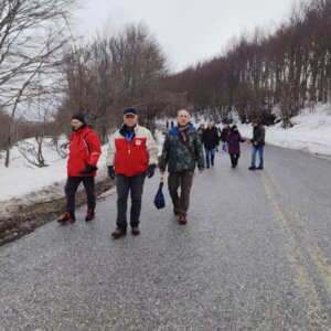Νωρίς το πρωί ξεκινήσαμε με ψιλόβροχο από τη Λαμία με προορισμό το χιονοδρομικό κέντρο Πηλίου, όπου πατήσαμε χιόνι πεζοπορώντας μέχρι το καταφύγιο του Ε.Ο.Σ. Βόλου. Μετά το πρωινό καφεδάκι στη ζεστή σάλα του και τη θαλπωρή του τζακιού, περιηγηθήκαμε στον ευρύτερο χώρο του χιονοδρομικού κέντρου που ήταν όμως χωρίς τη λειτουργία χιονοδρομιών λόγω του «απαγορευτικού» στην ευρύτερη περιοχή της Θεσσαλίας.