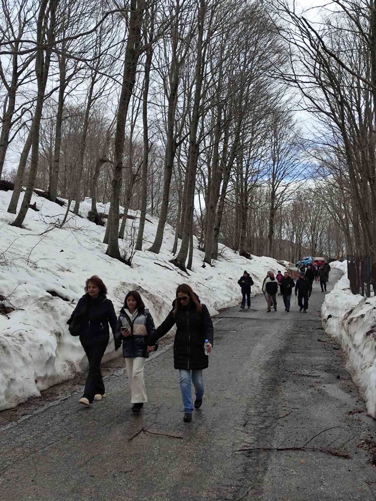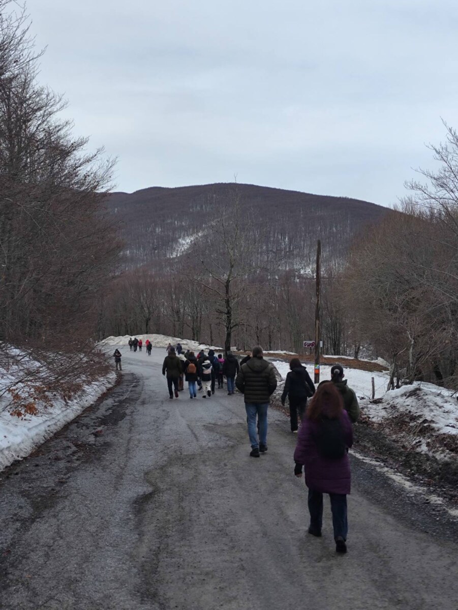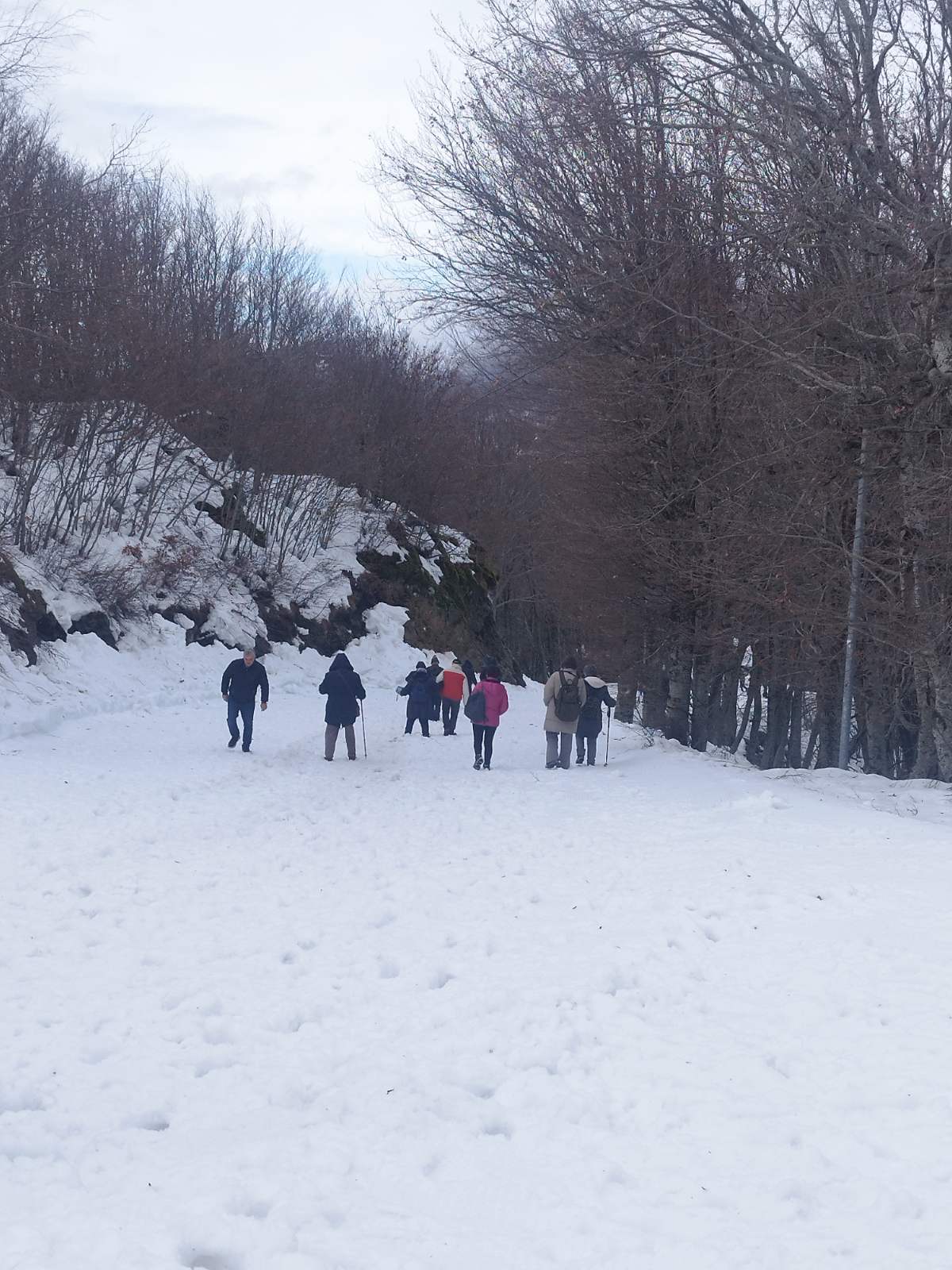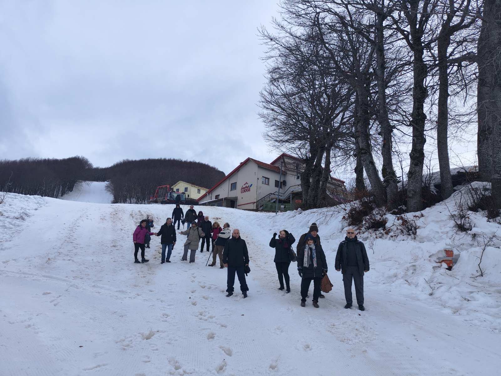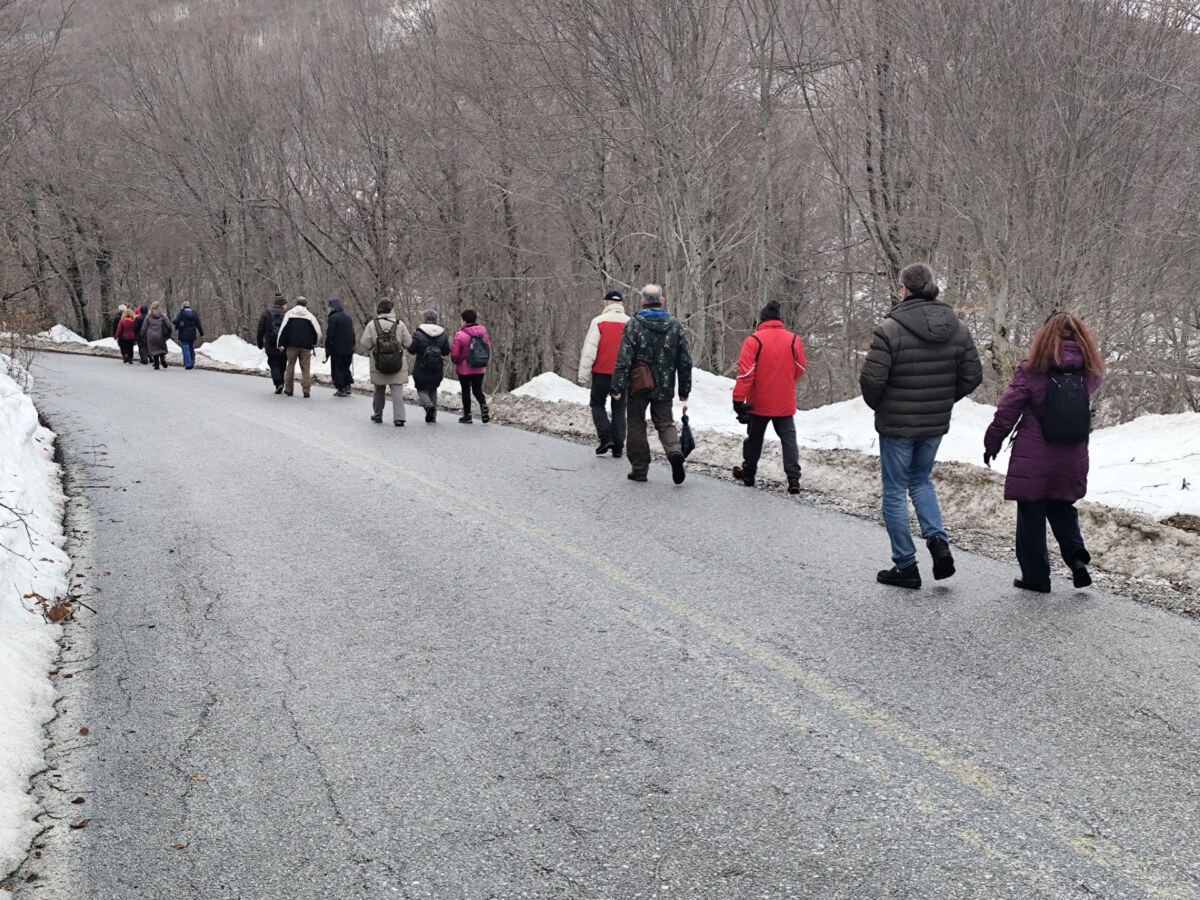 Νωρίς το πρωί ξεκινήσαμε με ψιλόβροχο από τη Λαμία με προορισμό το χιονοδρομικό κέντρο Πηλίου, όπου πατήσαμε χιόνι πεζοπορώντας μέχρι το καταφύγιο του Ε.Ο.Σ. Βόλου. Μετά το πρωινό καφεδάκι στη ζεστή σάλα του και τη θαλπωρή του τζακιού, περιηγηθήκαμε στον ευρύτερο χώρο του χιονοδρομικού κέντρου που ήταν όμως χωρίς τη λειτουργία χιονοδρομιών λόγω του «απαγορευτικού» στην ευρύτερη περιοχή της Θεσσαλίας.