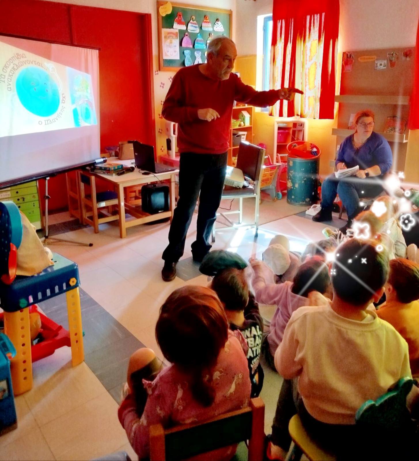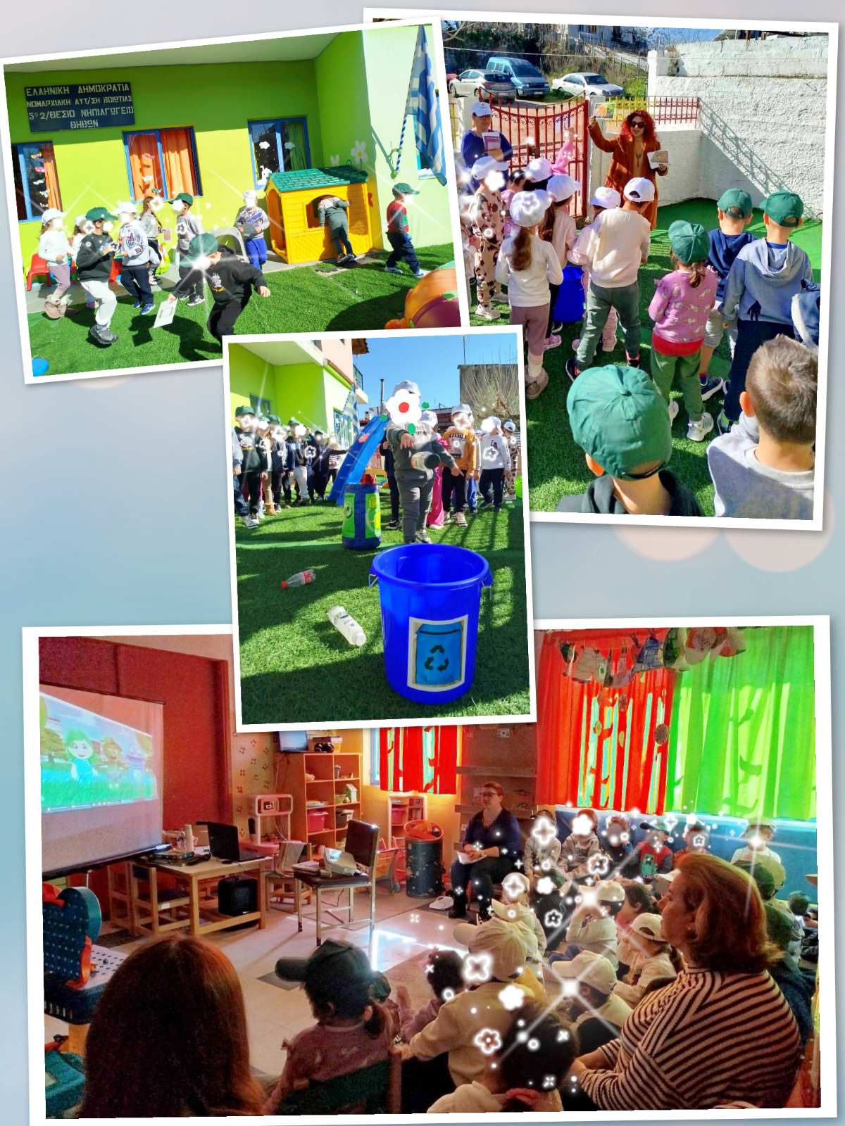 Μέσα από διαδραστικά κινούμενα σχέδια και ιστορίες, τα παιδιά γνώρισαν με απλό και ευχάριστο τρόπο την ανακύκλωση, την κομποστοποίηση, την επαναχρησιμοποίηση και τη σωστή διαχείριση των απορριμμάτων. Ακόμα και οι κάδοι μίλησαν και ζήτησαν βοήθεια!