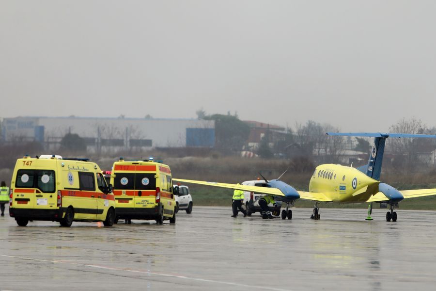 Η σημερινή αεροδιακομιδή, όπως και αυτή της περασμένης εβδομάδας, έγινε με αεροσκάφος του ΕΚΑΒ, που προσγειώθηκε το μεσημέρι στο αεροδρόμιο Μακεδονία, απ’ όπου και ο τραυματίας μεταφέρθηκε στο Παπαγεωργίου.