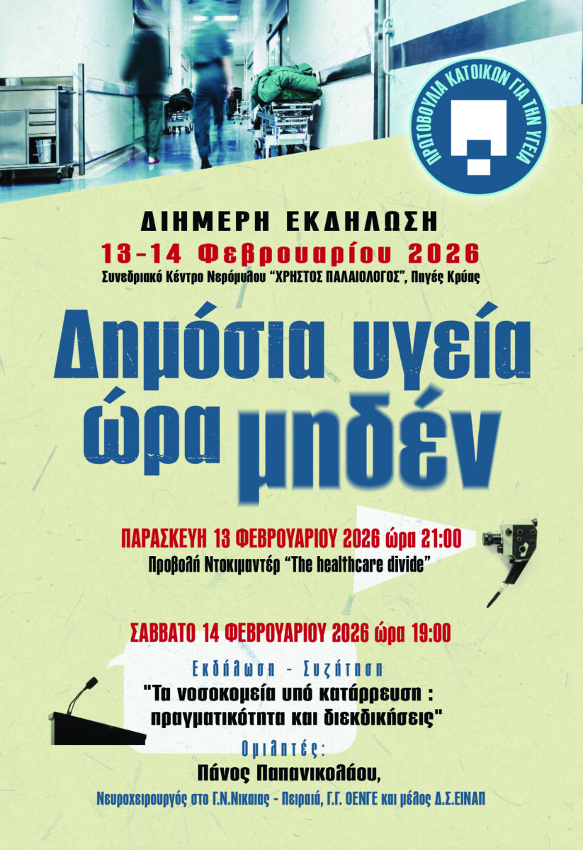 Η “Πρωτοβουλία κατοίκων για την υγεία” διοργανώνει διήμερη εκδήλωση στο Συνεδριακό Κέντρο “Χρήστος Παλαιολόγος”