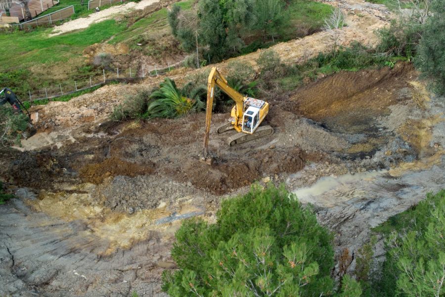 Τα σκαπτικά μηχανήματα δουλεύουν πυρετωδώς για να μην καταλήξουν τόνοι από πέτρες και χώματα στη θάλασσα, ενώ σοβαρό πρόβλημα αντιμετωπίζει και η δυτική πλευρά του χωριού.