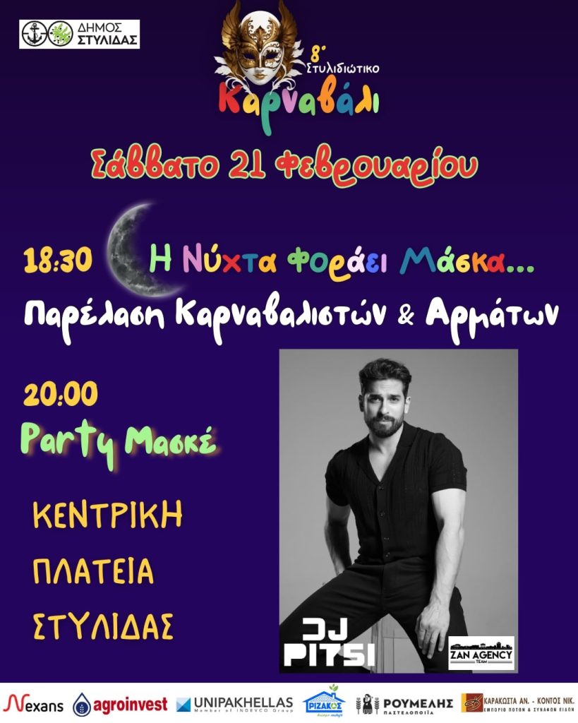 Ο Δήμος Στυλίδας προσκαλεί όλους στις αποκριάτικες εκδηλώσεις του, που θα πραγματοποιηθούν από την Παρασκευή 20 Φεβρουαρίου έως και την Καθαρά Δευτέρα 23 Φεβρουαρίου 2026.