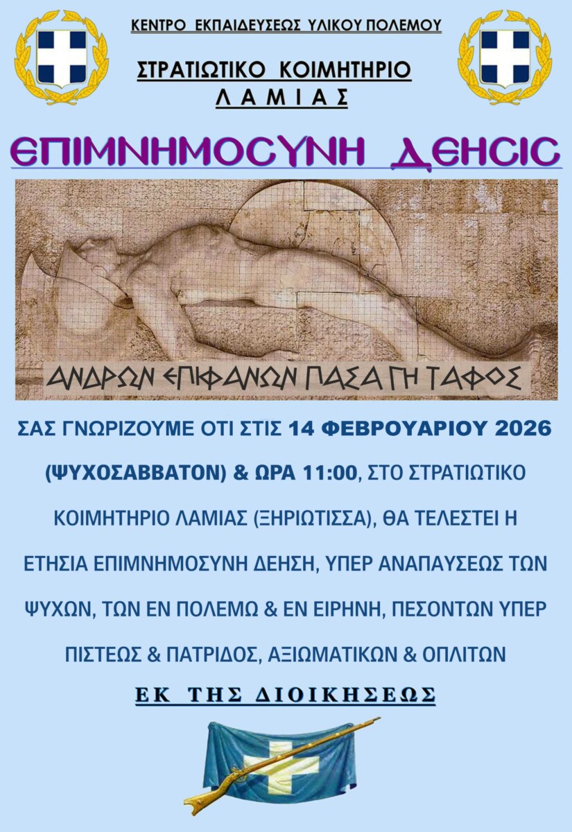 Το Σάββατο το ετήσιο μνημόσυνο στο Στρατιωτικό Κοιμητήριο Λαμίας
