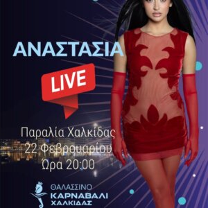 Ο πρωταγωνιστής της Χαλκίδας, ξακουστός Εύριπος, ηρεμεί τα στενά του και έρχεται να μας ταξιδέψει στις ιστορίες του από…ψηλά, με 400 drones να κάνουν την εμφάνισή τους και να δίνουν μια φαντασμαγορική sky παράσταση. Ο Βασιλιάς Καρνάβαλος παραδίνεται στις φλόγες του μέσα στη θάλασσα, ξορκίζοντας κάθε κακό, με το πλήθος των πυροτεχνημάτων να παίρνουν σειρά και να φωτίζουν τον ουρανό όλη της πόλης. Μετά τον Βασιλιά Καρνάβαλο, η σκηνή παίρνει «φωτιά», με την Αναστασία σε μια εκρηκτική συναυλία δίπλα στη θάλασσα, η οποία έρχεται να δώσει το απόλυτο φινάλε με γνωστές επιτυχίες, αστείρευτο κέφι και ανεξάντλητη ενέργεια.