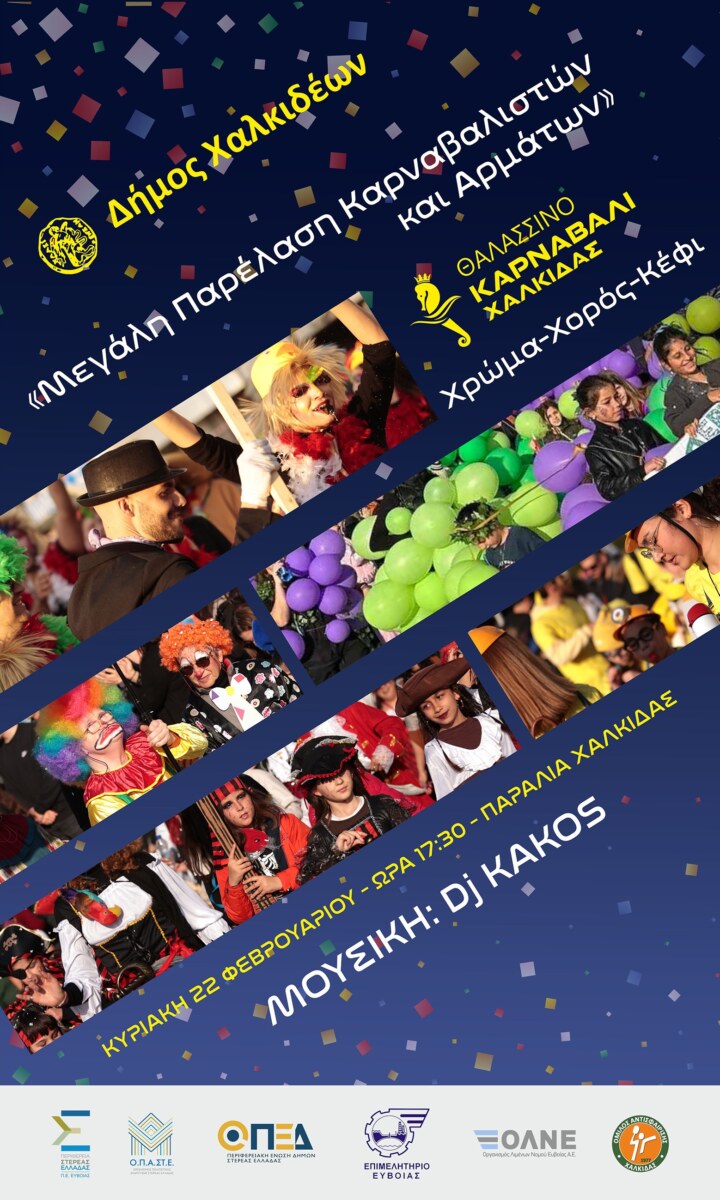 Η φαντασία, το γέλιο και το κέφι συντονίζονται με τους ρυθμούς της μουσικής κι έρχονται να πλημμυρίσουν την παραλία της Χαλκίδας, σκορπώντας ξέφρενη διάθεση, αισιοδοξία, χρώμα και χαμόγελα σε όλους. Μικροί και μεγάλοι καρναβαλιστές φοράνε τις στολές τους, χορεύουν ακούραστα με τις μουσικές επιλογές του DJ Kakos.