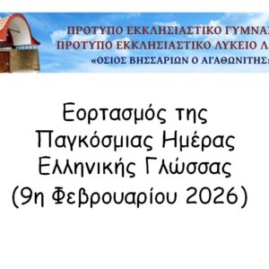 Με ιδιαίτερη συγκίνηση και ενθουσιασμό, πραγματοποιήθηκε ο Εορτασμός της Παγκόσμιας Ημέρας Ελληνικής Γλώσσας, τη Δευτέρα 9 Φεβρουαρίου 2026, στο Πρότυπο Εκκλησιαστικό Γυμνάσιο – Πρότυπο Εκκλησιαστικό Λύκειο Λαμίας «Όσιος Βησσαρίων ο Αγαθωνίτης».