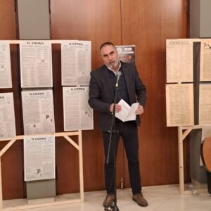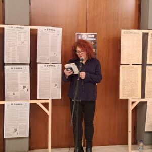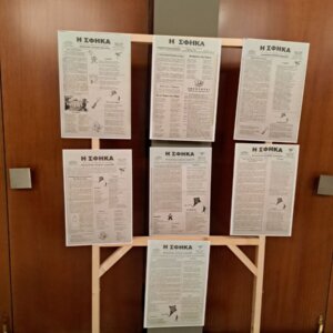 Η κ. Σοφία Βακιρτζηδέλη, Προϊσταμένη των Γενικών Αρχείων Κράτους – Τμήμα ΓΑΚ Φθιώτιδας, παρουσίασε τα σατιρικά έντυπα «Σπαρματσέτο» και «Αριστοφάνης» και επιμελήθηκε την έκθεση του αρχειακού υλικού.