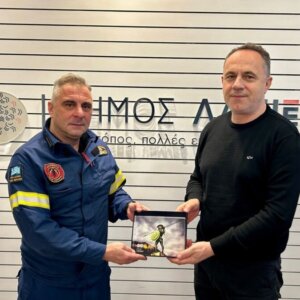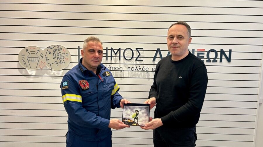 Ο Δήμαρχος Λαμιέων Πανουργιάς Παπαϊωάννου υποδέχθηκε στο Δημαρχείο σήμερα, Παρασκευή 20 Φεβρουαρίου 2026, τον νέο Περιφερειακό Διοικητή Πυροσβεστικών Υπηρεσιών Στερεάς Ελλάδας, Αρχιπύραρχο Κωνσταντίνο Τοκαλάκη, παρουσία του Αντιδημάρχου Πολιτικής Προστασίας, Αχιλλέα Τζουβάρα.