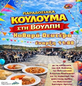 Καθαρά Δευτέρα | Βούλπη – Παραδοσιακά Κούλουμα Η Καθαρά Δευτέρα στη Βούλπη γιορτάστηκε όπως της αξίζει. Με σαρακοστιανά εδέσματα, παρέα, χορό και χαρταετό. Ο ουρανός γέμισε χρώματα, ενώ η πλατεία έγινε σημείο συνάντησης για όσους επέλεξαν να γιορτάσουν τα Κούλουμα σε ένα ζεστό, φιλόξενο και καθαρά Αγραφιώτικο περιβάλλον. Η καλή διάθεση, ο ανοιξιάτικος καιρός και η συμμετοχή του κόσμου έδωσαν ξεχωριστό τόνο στη μέρα, στέλνοντας το πιο όμορφο μήνυμα για την αξία των απλών, αληθινών στιγμών.
