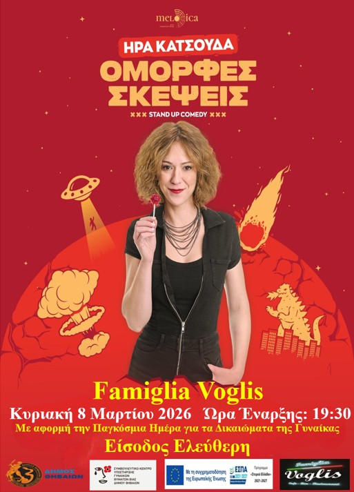 Παράλληλα, την Κυριακή 8 Μαρτίου 2026 στις 19:30, σε συν διοργάνωση με το Famiglia Voglis- Café -Bar- Restaurant θα παρουσιαστεί η Stand-up Comedy παράσταση «Όμορφες Σκέψεις» με την Ήρα Κατσούδα, που με χιούμορ και ευφυΐα θίγει ζητήματα καθημερινότητας, σχέσεων και κοινωνικών στερεοτύπων.