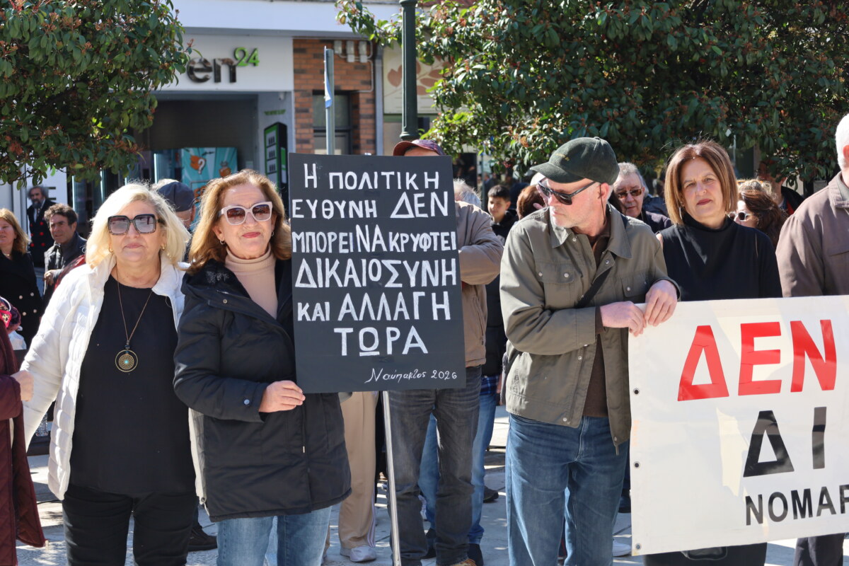 Στη Ναύπακτο, η προσέλευση του κόσμου ήταν ικανοποιητική με κεντρικά συνθήματα “Δικαιοσύνη” και “Δεν έχω δικαιοσύνη”.