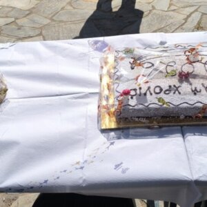 Την πρώτη μέρα της Άνοιξης, στην ηλιόλουστη πλατεία, μπροστά από την Αγία Παρασκευή, έκοψε την πίτα του ο Πολιτιστικός Σύλλογος του χωριού, στο Κουμαρίτσι.