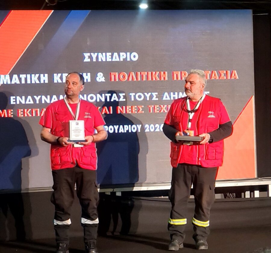 Η Εθελοντική Ομάδα του Δήμου βραβεύτηκε από την Κεντρική Ένωση Δήμων Ελλάδας (ΚΕΔΕ), στο πλαίσιο του συνεδρίου «Κλιματική Κρίση και Πολιτική Προστασία – Ενδυναμώνοντας τους Δήμους με Εκπαίδευση και Νέες Τεχνολογίες», που πραγματοποιήθηκε στις 27 και 28 Φεβρουαρίου 2026 στο Μεσογειακό Εκθεσιακό Κέντρο (MEC) στην Παιανία.