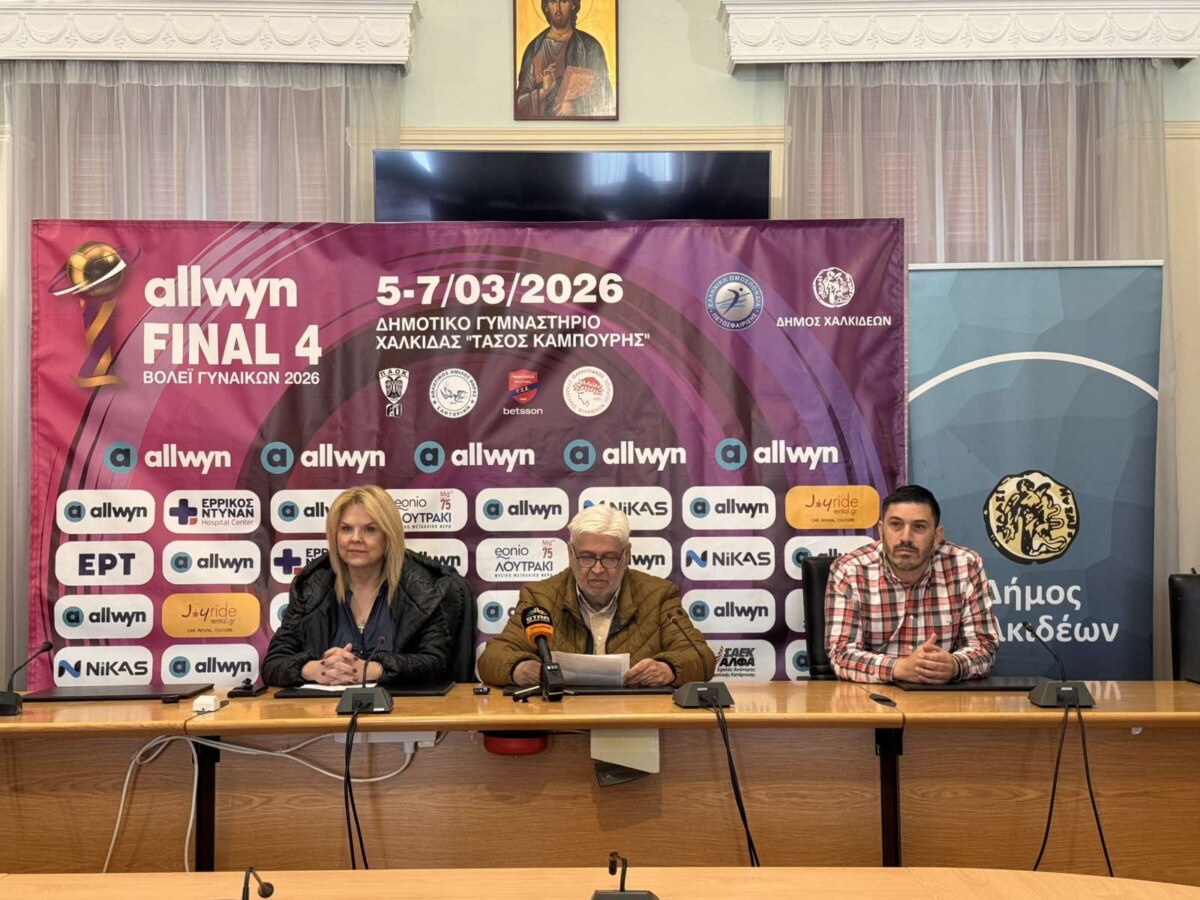 Στην τελική ευθεία για τη μεγάλη γιορτή του ελληνικού βόλεϊ βρίσκεται ο Δήμος Χαλκιδέων, ο οποίο φιλοξενεί το Allwyn Final 4 του Κυπέλλου Βόλεϊ Γυναικών και σήμερα, Τετάρτη 4 Μαρτίου 2026, πραγματοποιήθηκε στη Χαλκίδα η επίσημη Συνέντευξη Τύπου από τη Δήμαρχο Χαλκιδέων Έλενα Βάκα, τον Πρόεδρο της Ελληνικής Ομοσπονδίας Πετοσφαίρισης Γιώργου Καραμπέτσου, τον Αντιδήμαρχο Αθλητισμού Άγγελο Αναστασιάδη και τους εκπροσώπους των 4 ομάδων που θα πρωταγωνιστήσουν.