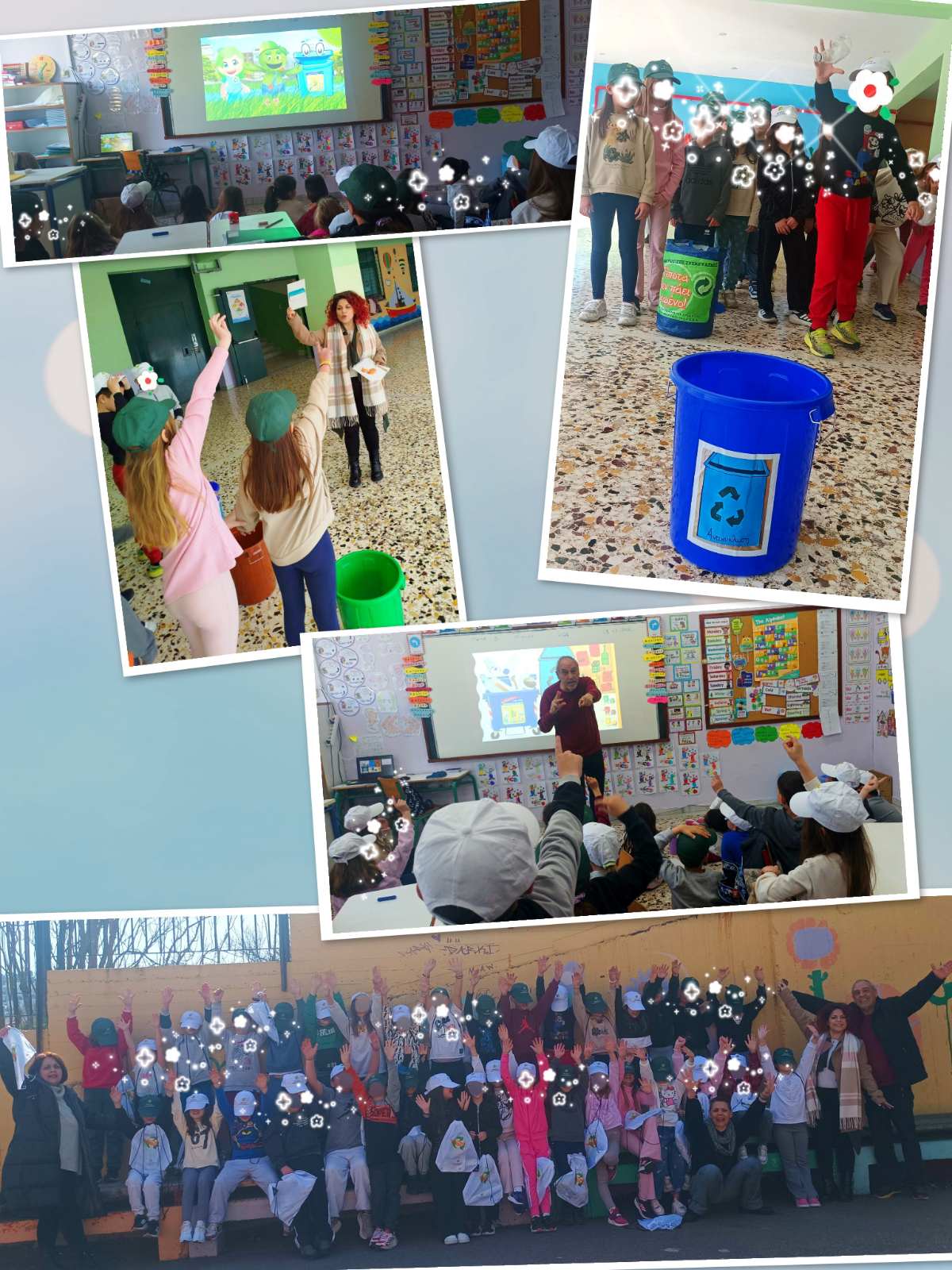 Με δημιουργικά παιχνίδια και προκλήσεις, όπως είναι «ο κρυμμένος θησαυρός των σκουπιδιών» και «το μπάσκετ της ανακύκλωσης», οι μαθητές είδαν στην πράξη πώς ένα αντικείμενο μπορεί να αποκτήσει νέα ζωή. Η επαναχρησιμοποίηση έγινε παιχνίδι φαντασίας και συνεργασίας, αποδεικνύοντας ότι η οικολογική σκέψη ξεκινά από μικρές, καθημερινές πράξεις.