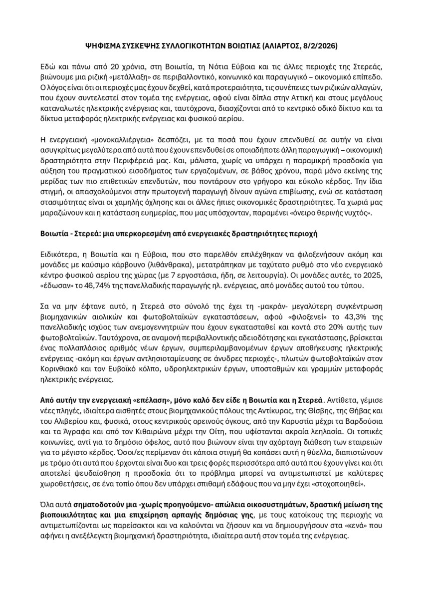 Ανταποκρινόμενοι στο κάλεσμα του συντονισμού Συλλογικοτήτων Βοιωτίας μετά την σύσκεψη της 8/2/26 στην Αλίαρτο αποφασίσαμε: