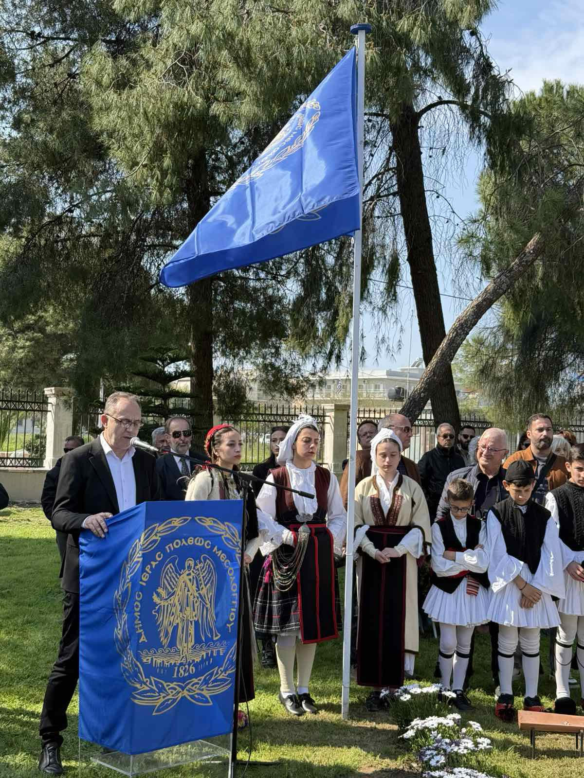 Έρχομαι από έναν ηρωικό τόπο, τη Ρούμελη, γη αγώνων και θυσιών, για να βρεθώ σήμερα εδώ, στον επίσης ηρωικό τόπο του Μεσολογγίου, σύμβολο ελευθερίας και αυταπάρνησης. Οι Αμπλιανίτες, με βαθιές ρίζες στην ιστορία της πατρίδας μας, ζουν και δημιουργούν και στον Δήμο Λαμιέων, κρατώντας ζωντανή την παράδοση, το ήθος και τη μνήμη των προγόνων τους. Η σημερινή στιγμή μάς ενώνει όλους σε μια κοινή ιστορική συνέχεια, που ξεκινά από τα βουνά της Ρούμελης και φτάνει έως τα ιερά χώματα του Μεσολογγίου.