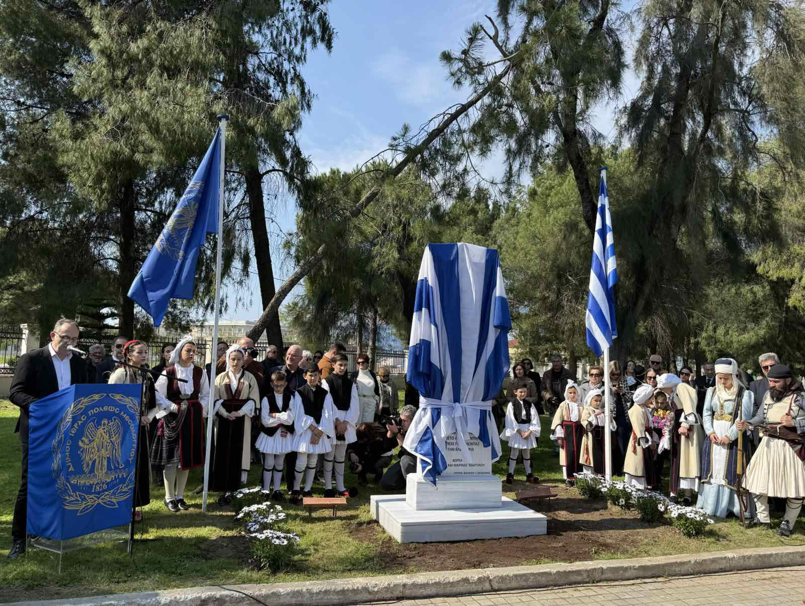 “Με ιδιαίτερη τιμή παρευρίσκομαι σήμερα στο ιερό Μεσολόγγι, σε έναν τόπο που αποτελεί παγκόσμιο σύμβολο ελευθερίας και αυτοθυσίας, για τα αποκαλυπτήρια του αγάλματος των Αμπλιανιτών.