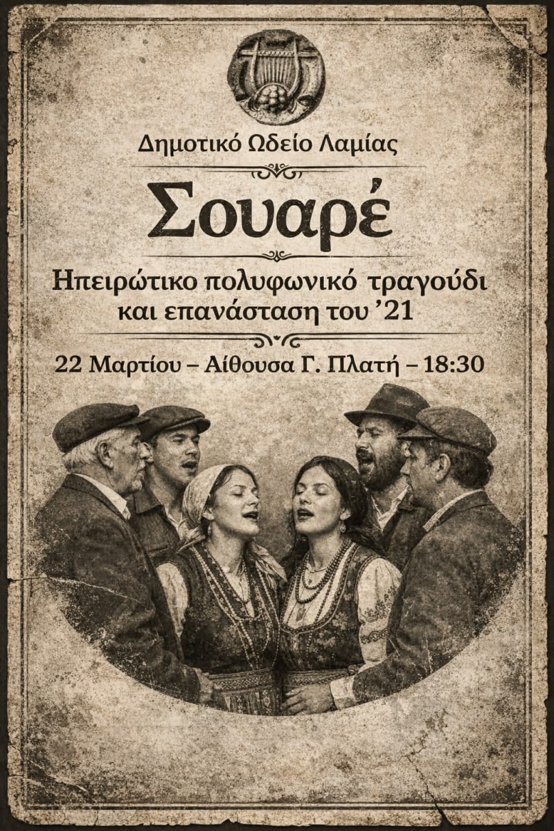 Δημοτικό Ωδείο Λαμίας: Απογευματινό Soiree – «Ηπειρώτικο Πολυφωνικό Τραγούδι και Επανάσταση του ΄21»