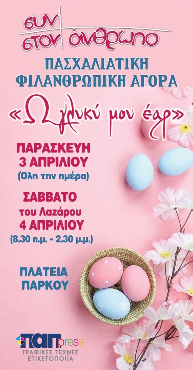 «Ω Γλυκύ μου Έαρ», η Πασχαλιάτικη Φιλανθρωπική Αγορά του Συλλόγου «Συν στον άνθρωπο»