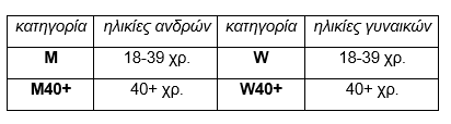 Ακολουθούν οι ηλικιακές κατηγορίες: