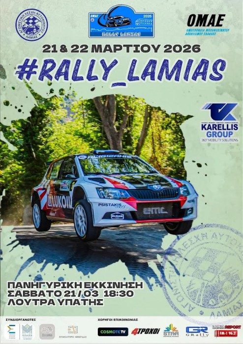 Ο Δήμος Λαμιέων ανακοινώνει με ιδιαίτερη χαρά την πραγματοποίηση του Ράλλυ Λαμίας 2026, ενός σημαντικού αγωνιστικού γεγονότος που σηματοδοτεί την πρεμιέρα του Πανελληνίου Πρωταθλήματος Ράλλυ Ασφάλτου και του Πανελλήνιου Πρωταθλήματος Ράλλυ Ιστορικών Αυτοκινήτων.