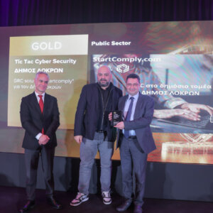 Στο Sofitel Athens Airport πραγματοποιήθηκε την Τρίτη 17 Μαρτίου 2026 στις 19.30, η Τελετή Απονομής Βραβείων των νικητών των Cyber Security Αwards 2026, όπου ο Δήμος Λοκρών σε συνεργασία με την εταιρεία TicTac Cyber Security απέσπασε το χρυσό βραβείο στην κατηγορία «GRC στο δημόσιο τομέα».