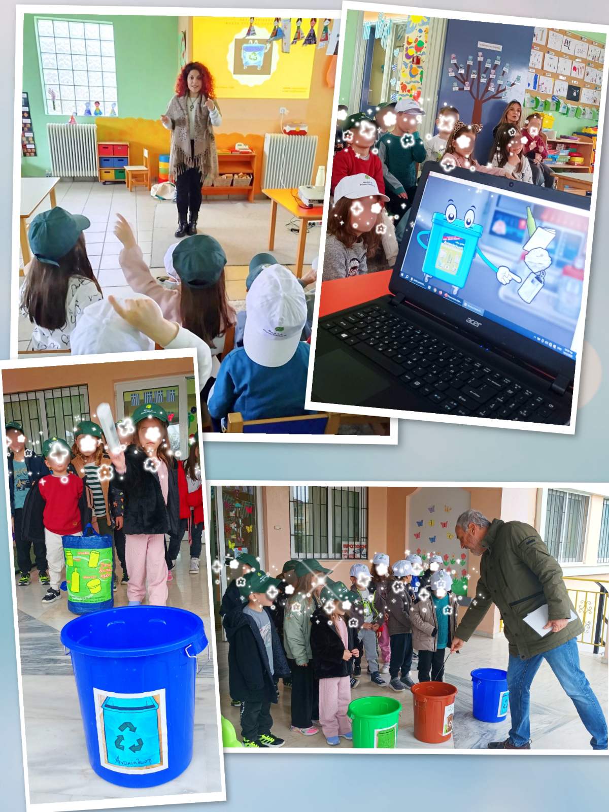 Μέσα από διαδραστικά κινούμενα σχέδια και ιστορίες, τα παιδιά γνώρισαν με απλό και ευχάριστο τρόπο την ανακύκλωση, την κομποστοποίηση, την επαναχρησιμοποίηση και τη σωστή διαχείριση των απορριμμάτων. Ακόμα και οι κάδοι μίλησαν και ζήτησαν βοήθεια!