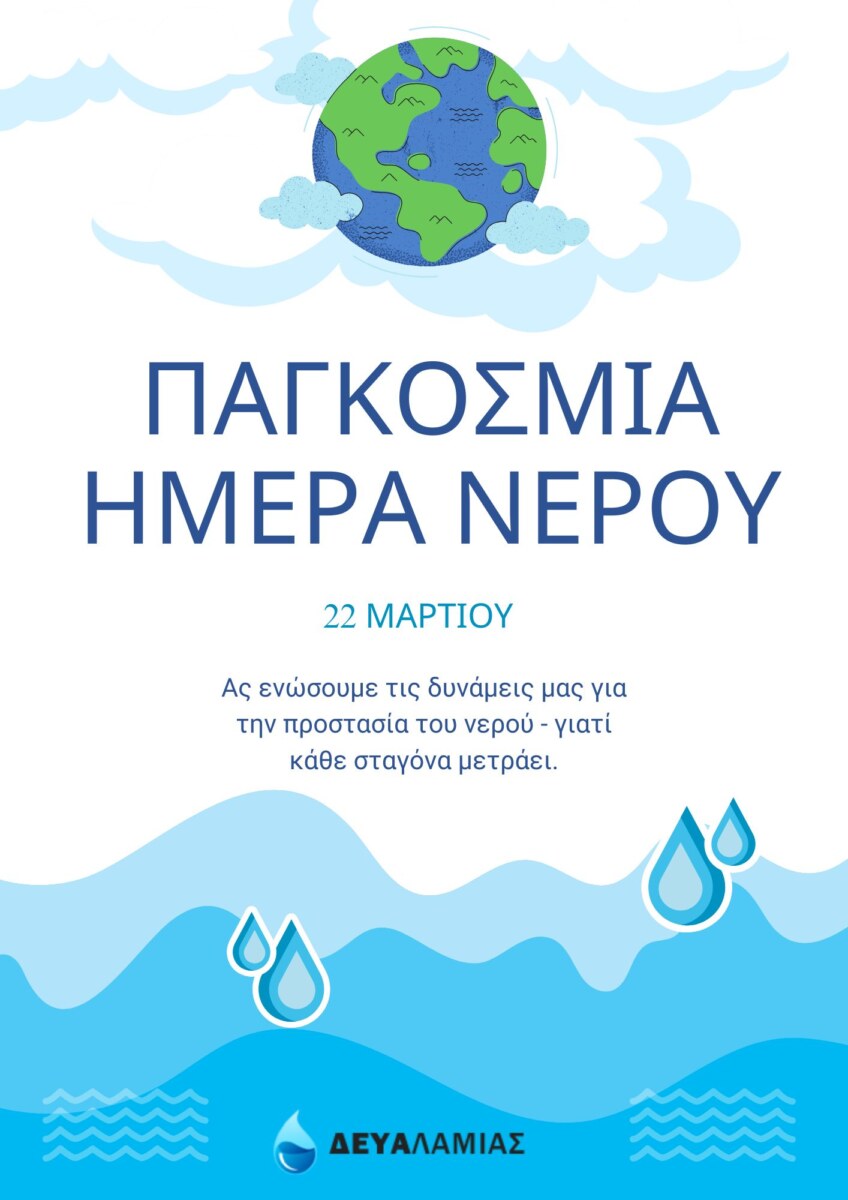 Η Παγκόσμια Ημέρα του Νερού που γιορτάζεται κάθε χρόνο στις 22 Μαρτίου, έχει ορισθεί από τον ΟΗΕ για να μας υπενθυμίζει ότι το νερό είναι ο πιο πολύτιμος φυσικός πόρος που συνδέεται με την ζωή και για τον λόγο αυτό η διαχείρισή του θα πρέπει να τον διασφαλίζει για τις γενιές που έρχονται.