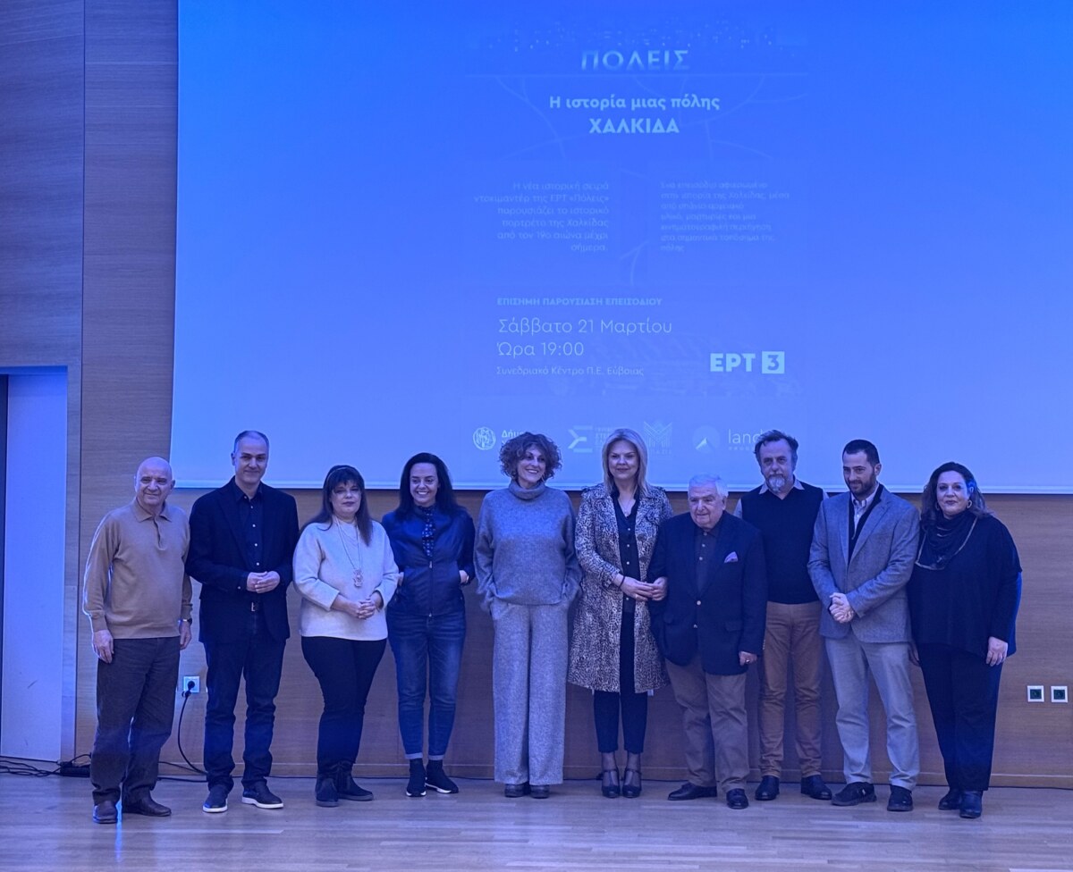 Στην πόλη της Χαλκίδας είναι αφιερωμένο το πρώτο επεισόδιο της νέας ιστορικής σειράς ντοκιμαντέρ της ΕΡΤ «Πόλεις» και χθες, Σάββατο 21 Μαρτίου 2026, πραγματοποιήθηκε η επίσημη παρουσίαση του επεισοδίου από τον Δήμο Χαλκιδέων, σε συνεργασία με την εταιρεία παραγωγής Landart και την Περιφέρεια Στερεάς Ελλάδας, στο Συνεδριακό Κέντρο της Περιφερειακής Ενότητας Εύβοιας.