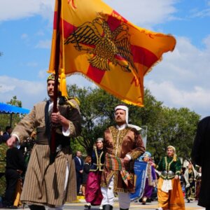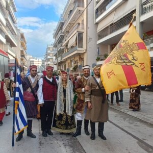 Στον Ευβοϊκό ουρανό, εκεί όπου ο άνεμος κουβαλά μνήμες και ψιθύρους προγόνων, δύο σημαίες κυμάτιζαν με περηφάνια. Η γαλανόλευκη, σύμβολο πίστης και ελευθερίας, και δίπλα της η Παλαιολόγεια, βαριά από ιστορία, θυσίες και αλησμόνητες πατρίδες. Δεν ήταν απλώς υφάσματα, ήταν ψυχές που αρνήθηκαν να σβήσουν.