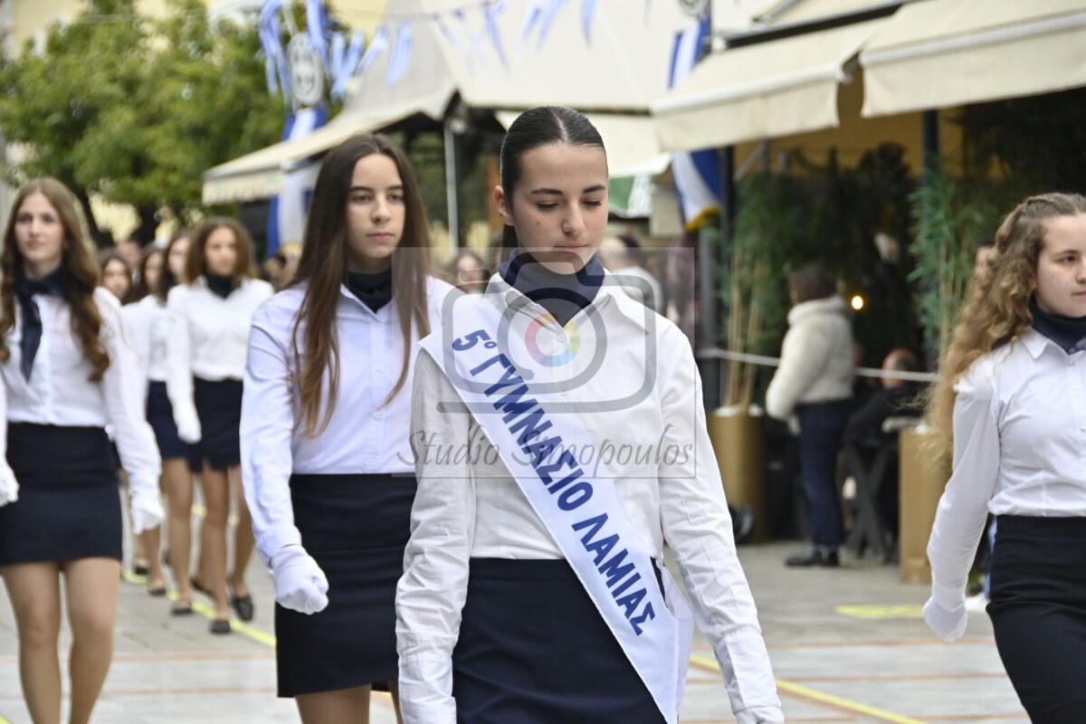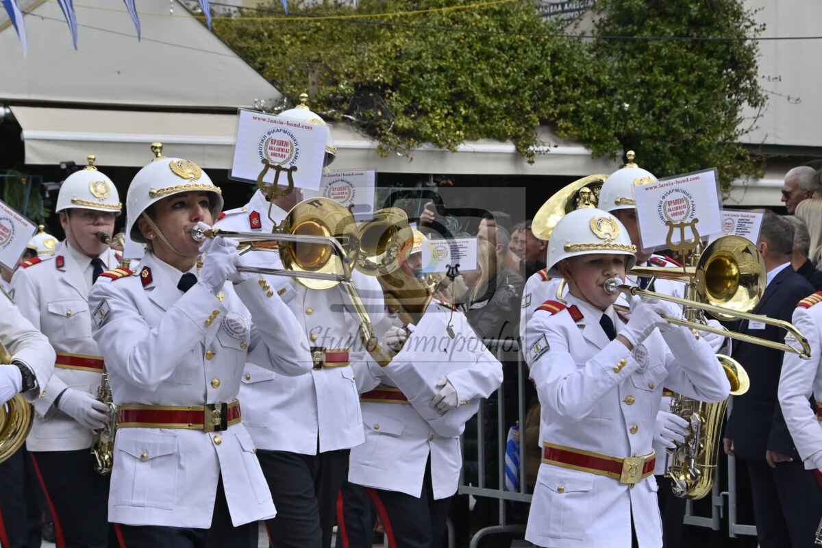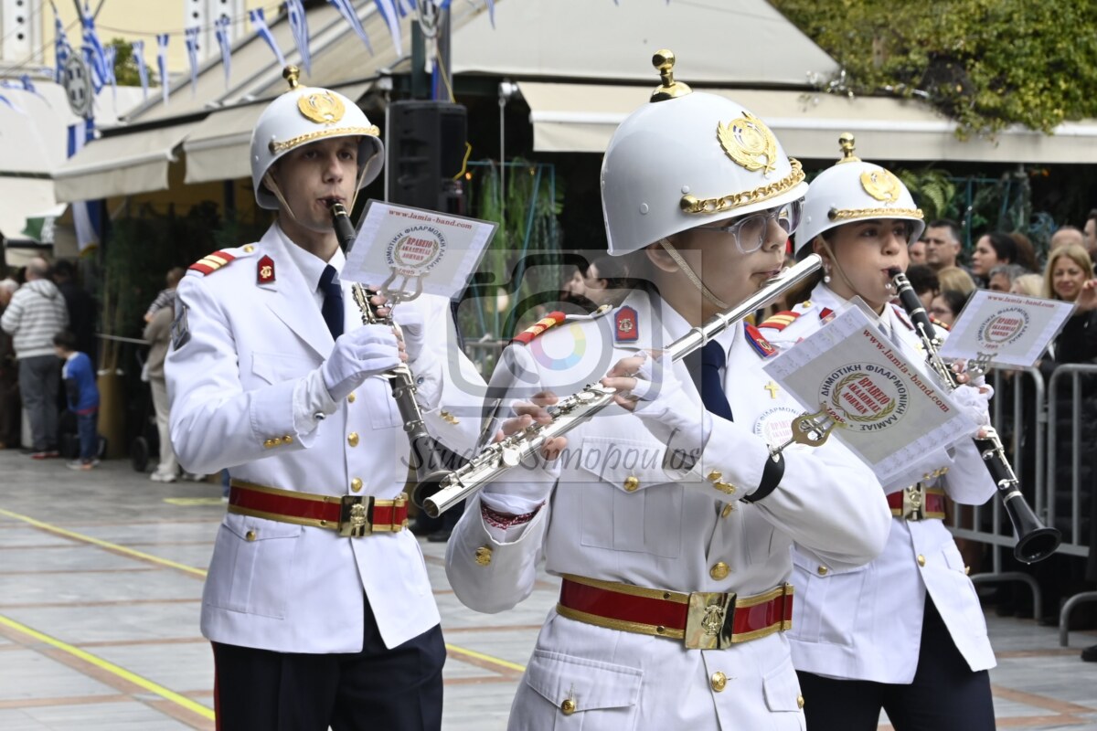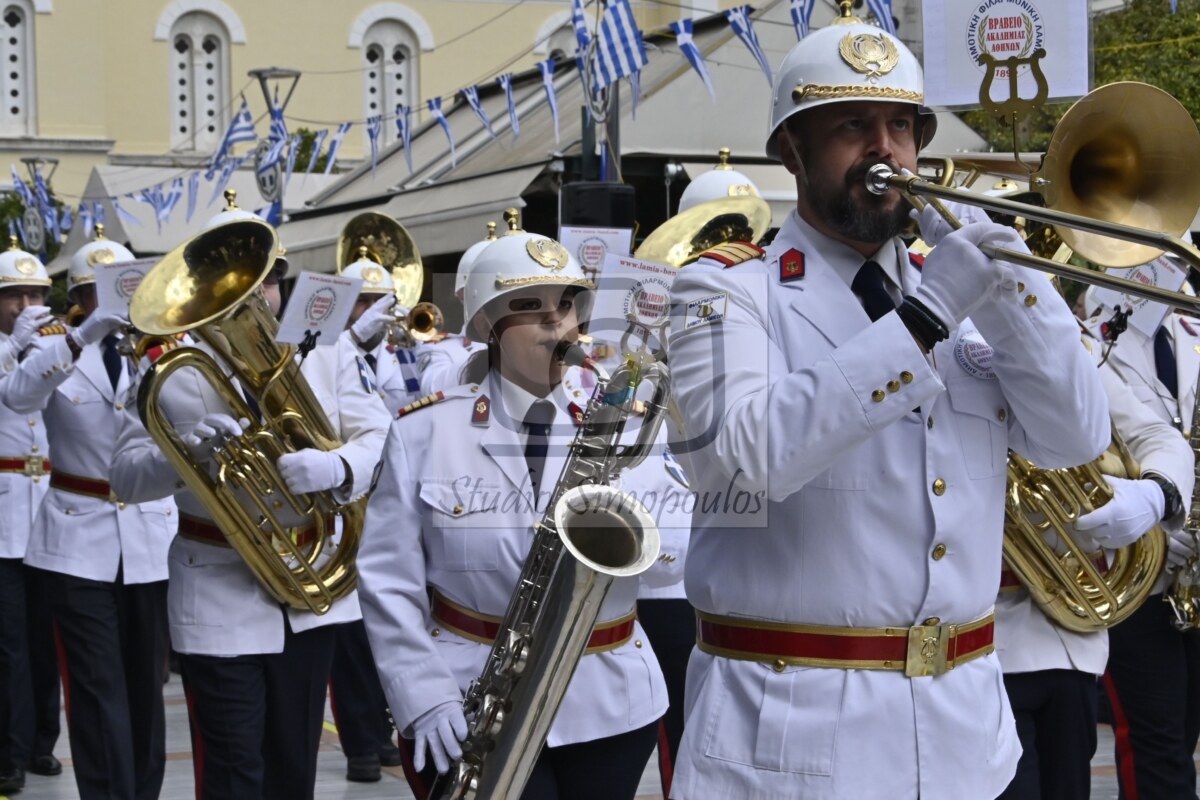 Στην αρχή της παρέλασης η Φιλαρμονική Ορχήστρα του δήμου Λαμιέων επεφύλασσε μία έκπληξη στους επισήμους, αφού σταμάτησε μπροστά τους και τα μέλη της τραγούδησαν τον Θούριο του Ρήγα.