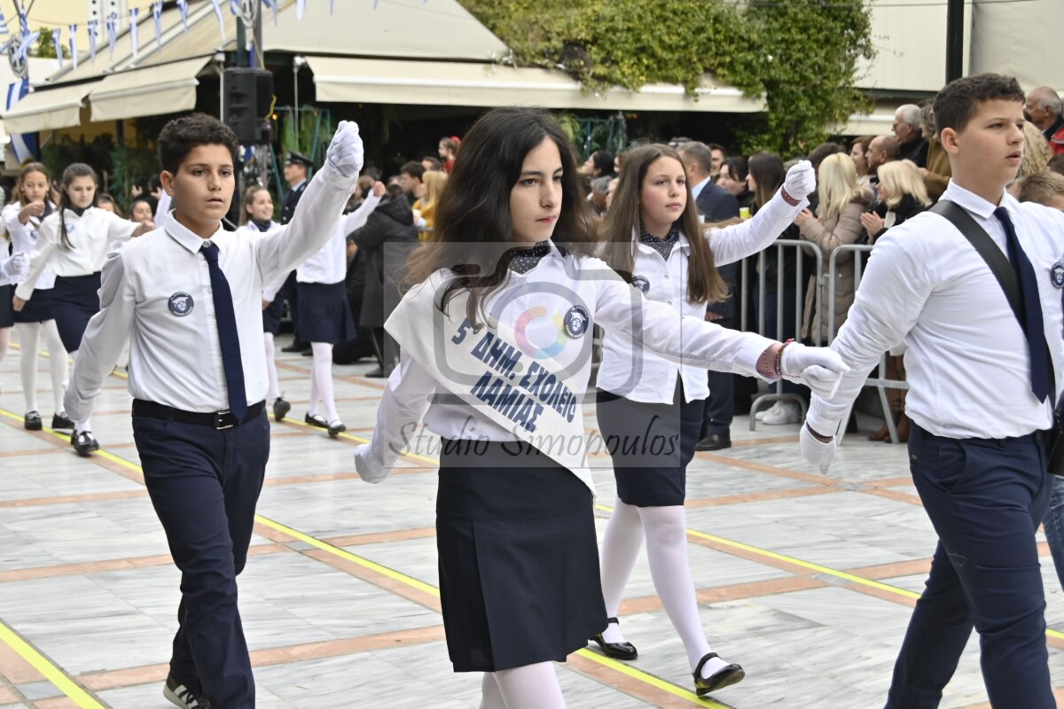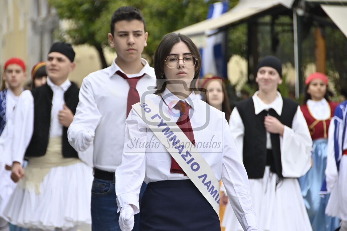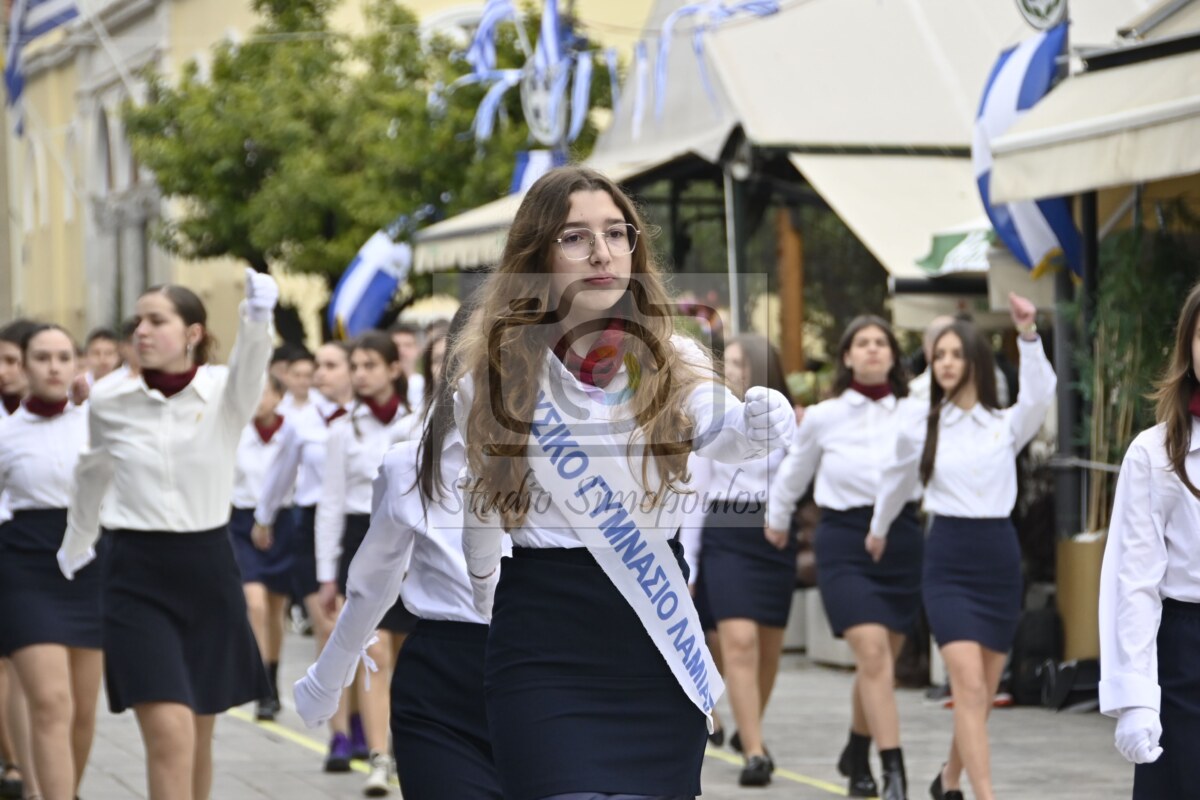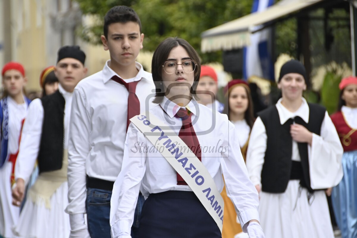 Στην αρχή της παρέλασης η Φιλαρμονική Ορχήστρα του δήμου Λαμιέων επεφύλασσε μία έκπληξη στους επισήμους, αφού σταμάτησε μπροστά τους και τα μέλη της τραγούδησαν τον Θούριο του Ρήγα.