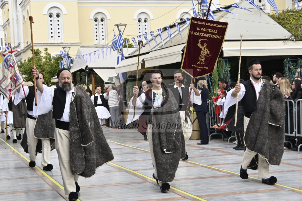 Το κέντρο της πόλης κατακλύστηκε από κόσμο που παρακολούθησε από κοντά την παρέλαση, ενώ νωρίτερα τελέστηκε επίσημη δοξολογία στον Ιερό Μητροπολιτικό Ναό, λιτανεία της  Ιεράς εικόνας Ευαγγελισμού της Θεοτόκου, επιμνημόσυνη  δέηση και κατάθεση στεφάνων στον Ανδριάντα του Αθανασίου Διάκου στην ομώνυμη πλατεία.
