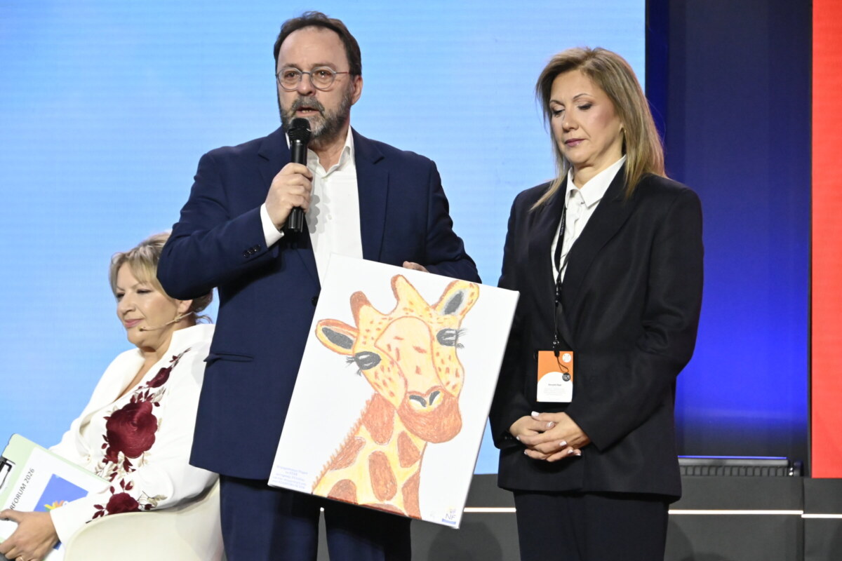 Η συζήτηση έκλεισε με μια συγκινητική στιγμή. Η Κατερίνα Παχή, μητέρα ασθενούς με νευροϊνωμάτωση και Μέλος Πανελλήνιου Συλλόγου Ασθενών & Φίλων Πασχόντων με Νευροϊνωμάτωση, παραχώρησε στον Διευθύνοντα Σύμβουλο του STAR Κ.Ε. μια ιδιόχειρη ζωγραφιά που απεικονίζει μια καμηλοπάρδαλη ως σύμβολο της νόσου ΝF.