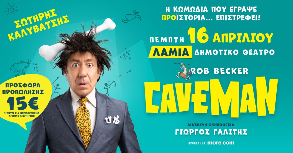 Το παγκόσμιο φαινόμενο CAVEMAN- η πιο επιτυχημένη κωμωδία για της σχέσεις των δύο φύλων- είναι εδώ, με πολύ γέλιο, αυτοσαρκασμό,συγκίνηση, χορό, τραγούδι, μπαλέτα, λιοντάρια, κροκοδείλους, ένα μοναδικό υπερθέαμα με χιλιάδες κομπάρσους και προϊστορικές αλήθειες που σπάνε κόκαλα (μαμούθ)!