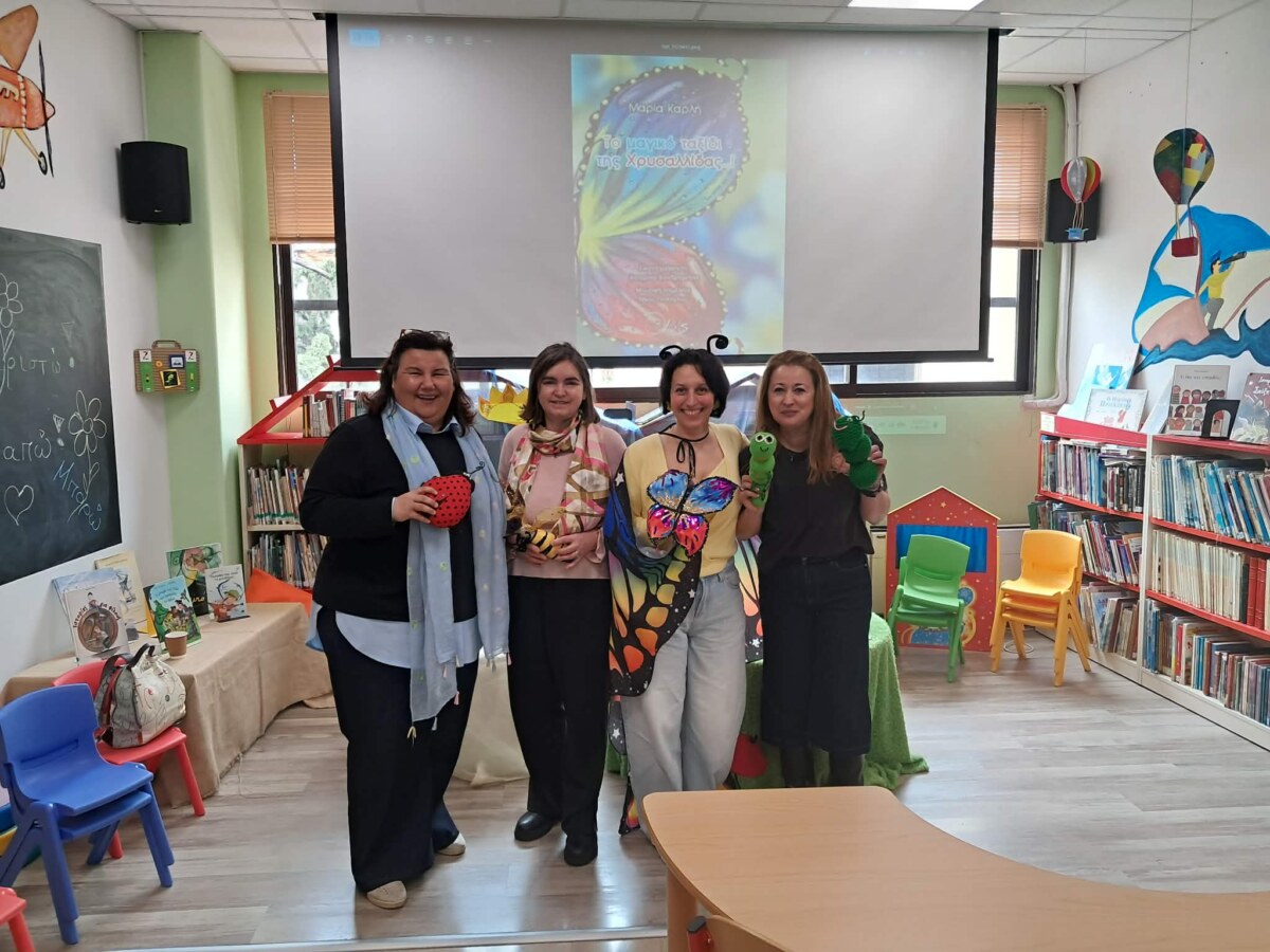 Την Πέμπτη 2 Απριλίου μαθητές της Α τάξης του 10 Δημοτικού Σχολείου Λαμίας, επισκέφθηκαν τη Δημόσια κεντρική βιβλιοθήκη και είχαν την ευκαιρία να γνωρίσουν από κοντά μια συγγραφέα παιδικών βιβλίων, η οποία με μαγικό τρόπο τους μετέφερε στην ιστορία της Χρυσαλίδας της. Η Μαρία Καρλή με το βιβλίο της «Το μαγικό ταξίδι της Χρυσαλλίδας…!» ταξίδεψε θεατροπαιδαγωγικά τους μικρούς μας φίλους στη δύναμη της ιστορίας της και μετέτρεψε το παιδικό τμήμα της Βιβλιοθήκης σε ένα κήπο μαγικό!