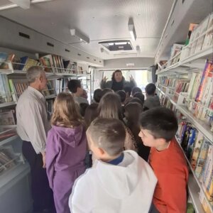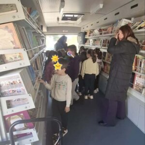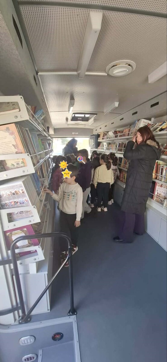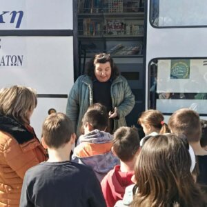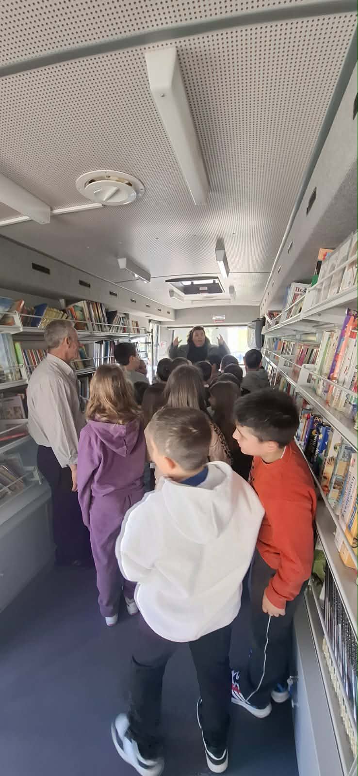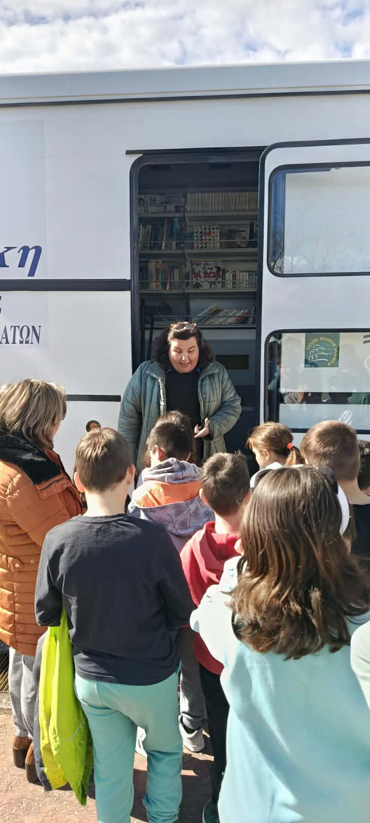 Στη συνάντησή μας οι μαθητές είχαν την ευκαιρία να γνωρίσουν από κοντά κι ένα «κήπο» ιδιαίτερο, που ταξιδεύει επάνω σε 4 τροχούς, την Κινητή Βιβλιοθήκη Λαμίας η οποία διαθέτει μια πλούσια συλλογή παιδικών κι εφηβικών βιβλίων.