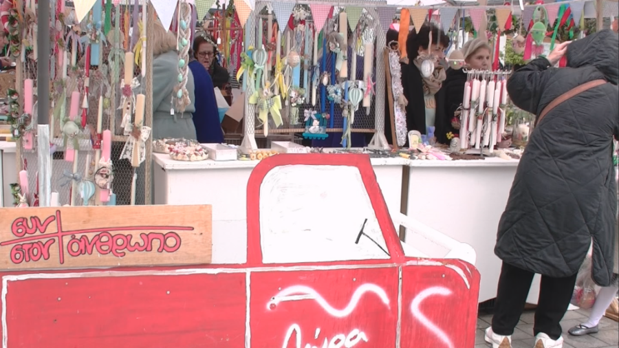 Οι επισκέπτες έχουν την ευκαιρία να επιλέξουν μέσα από μια μεγάλη ποικιλία χειροποίητων δημιουργιών: πασχαλινές λαμπάδες, διακοσμητικά για το γιορτινό τραπέζι και κοσμήματα.