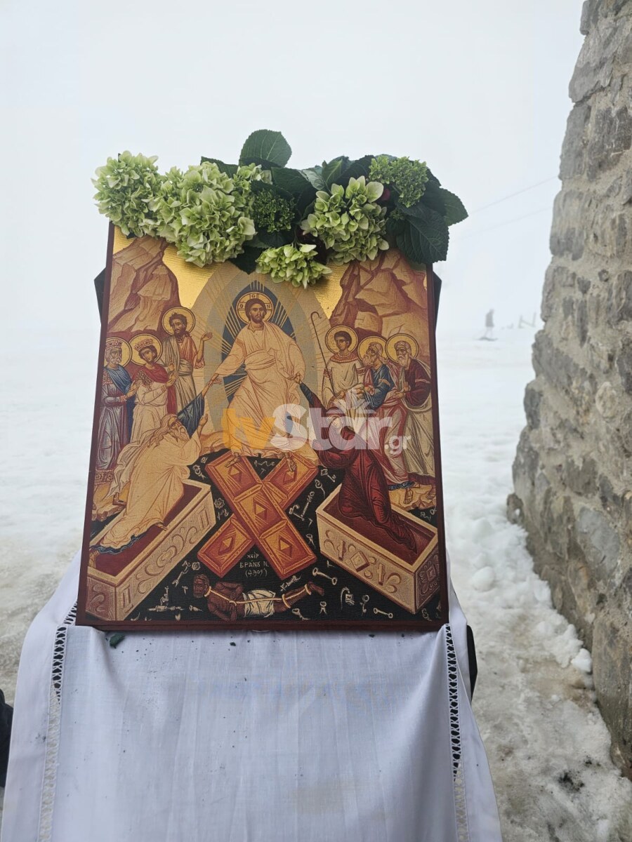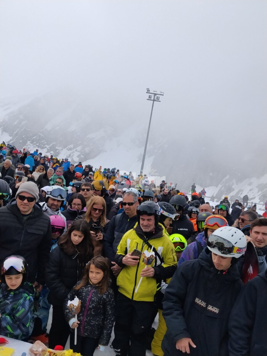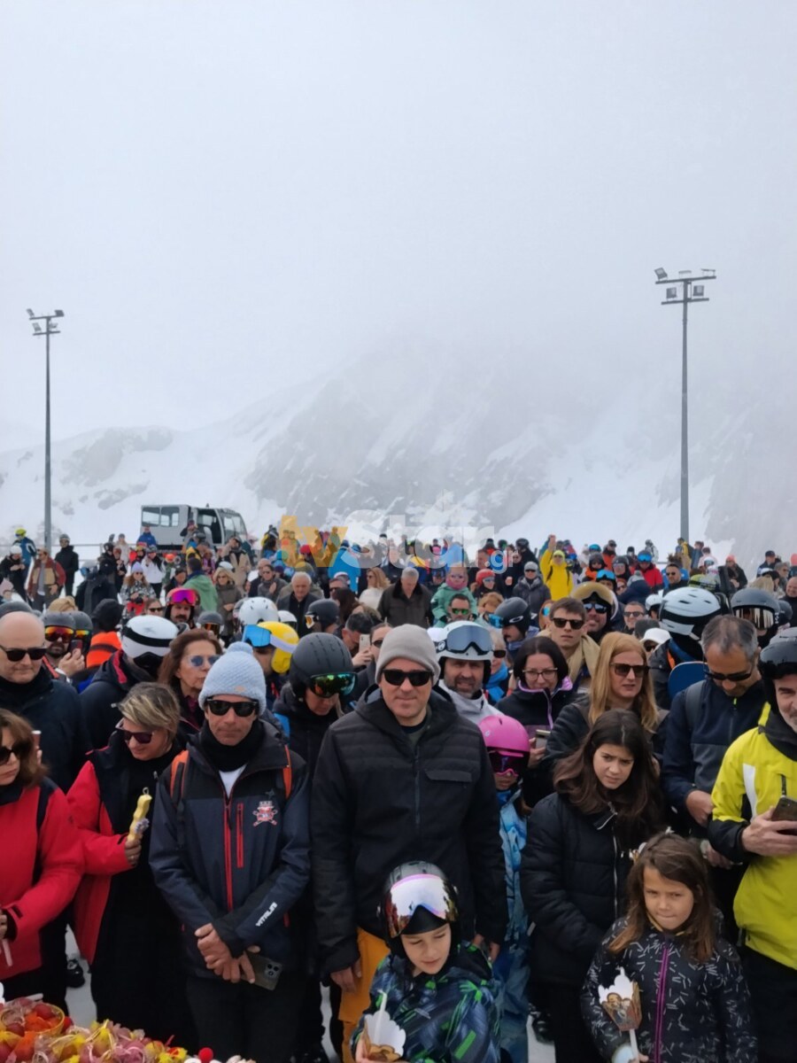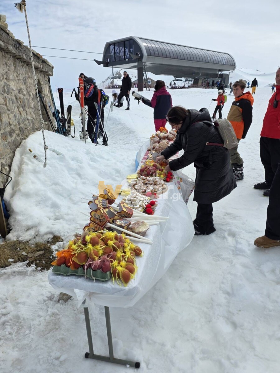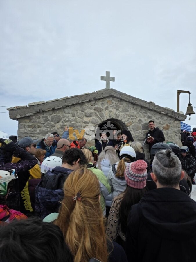 Μέσα στο λευκό τοπίο και την ψύχρα του βουνού, εκατοντάδες σκιέρ και επισκέπτες άφησαν για λίγο στην άκρη το χόμπι τους και ενώθηκαν σε μια στιγμή πίστης και συγκίνησης.