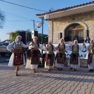 Στον περίβολο της εκκλησίας του Αγίου Γεωργίου χόρεψαν τα χορευτικά τμήματα ενηλίκων και παίδων του Πολιτιστικού Συλλόγου Αρκίτσας «Ο Κλείδωνας» και το Χορευτικό του Πολιτιστικού Συλλόγου Μαρτίνου «Το Μαρτίνο».
