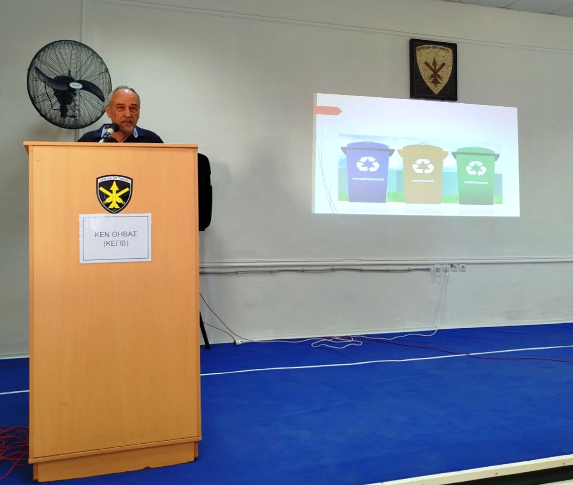 Δράση περιβαλλοντικής εκπαίδευσης με θέμα την ορθολογική διαχείριση των απορριμμάτων πραγματοποίησαν, την Παρασκευή 24 Απριλίου 2026, εκπρόσωποι του ΦΟΔΣΑ Στερεάς Ελλάδας, στο Κέντρο Εκπαίδευσης Νεοσύλλεκτων Θήβας (Κέντρο Εκπαίδευσης Πυροβολικού), στο πλαίσιο του Σχολείου Μαχητή των οπλιτών.