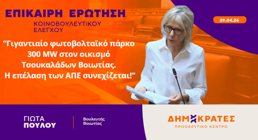 Γιώτα Πούλου: Γιγαντιαίο φωτοβολταϊκό πάρκο 300 MW στον οικισμό Τσουκαλάδων Βοιωτίας. Η επέλαση των ΑΠΕ συνεχίζεται!
